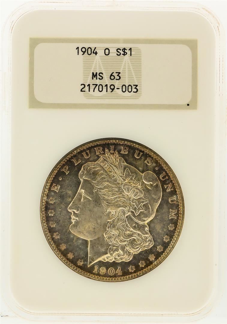 One 1904-O $1 Morgan Silver Dollar NGC Graded MS63. NGC Certified.