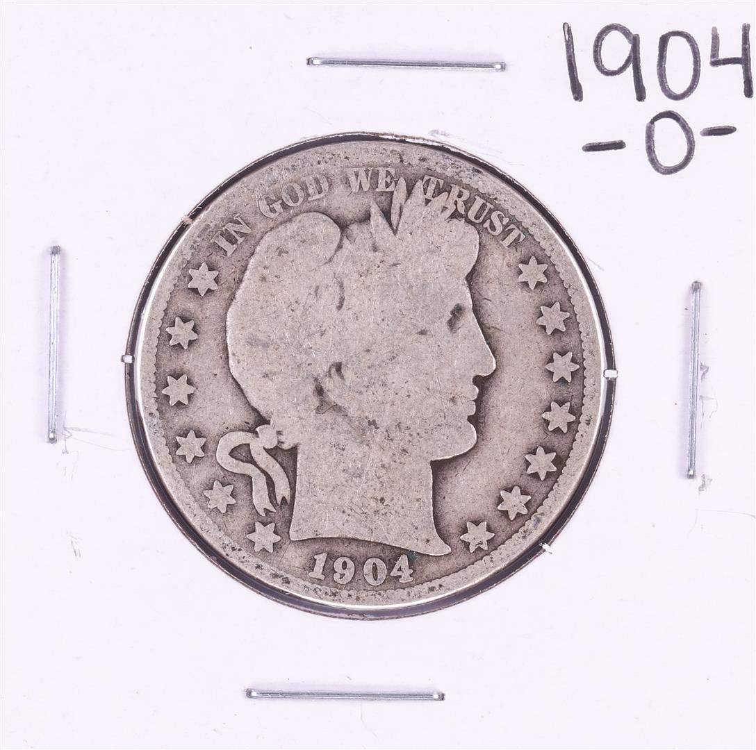 One 1904-O Barber Half Dollar Coin.