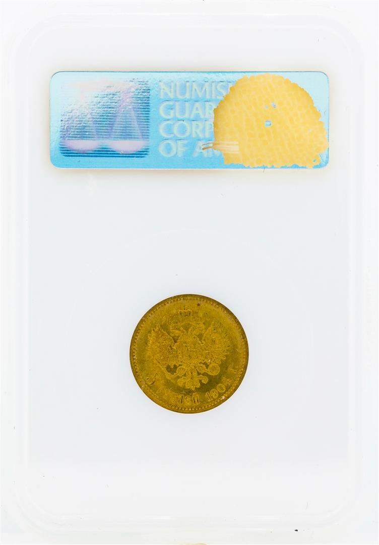 One 1904 Russia 5 Roubles Gold Coin NGC MS66. NGC Certified.
