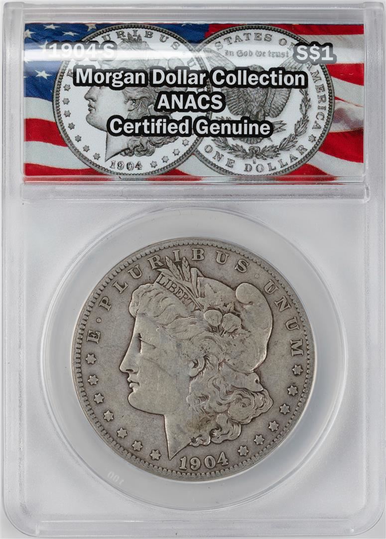 One 1904-S $1 Morgan Silver Dollar Coin ANACS Genuine. ANACS Certified.