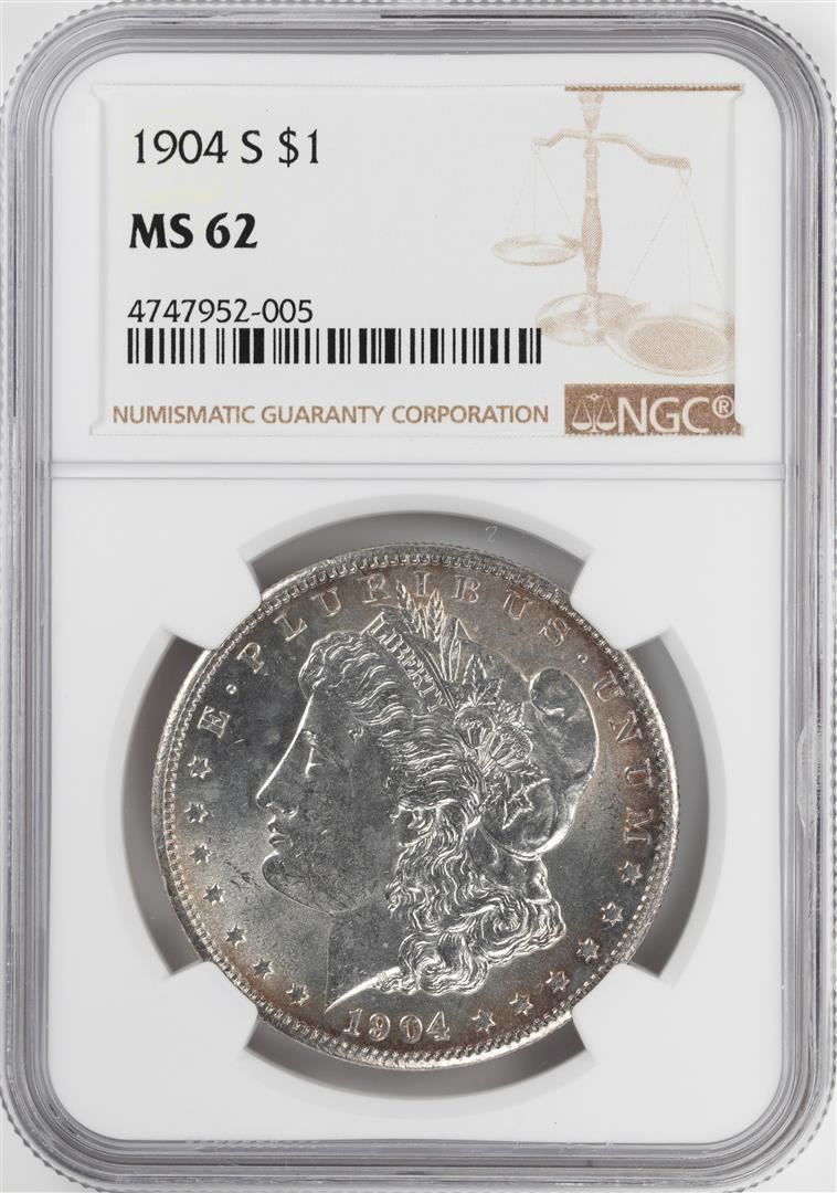 One 1904-S $1 Morgan Silver Dollar Coin NGC MS62. NGC Certified.