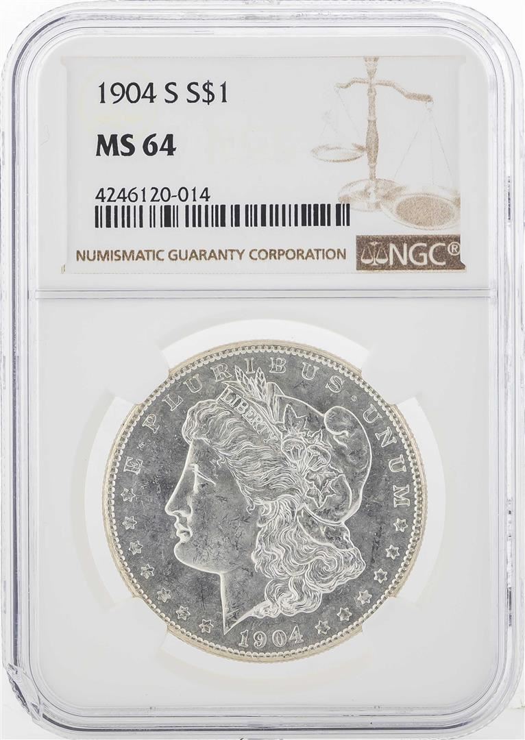 One 1904-S $1 Morgan Silver Dollar Coin NGC MS64. NGC Certified.