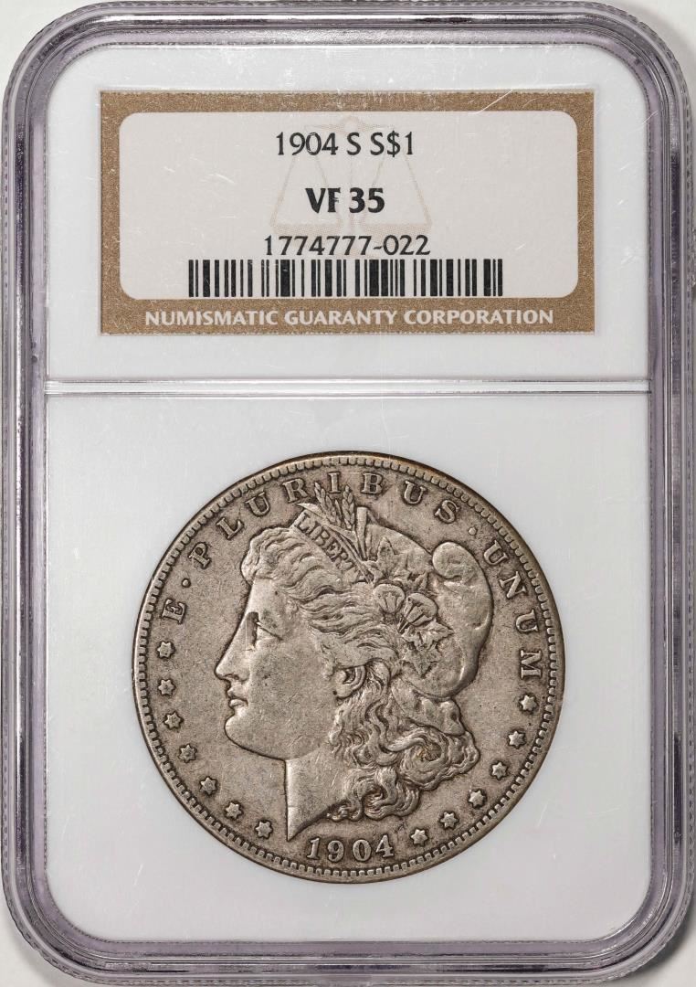 One 1904-S $1 Morgan Silver Dollar Coin NGC VF35. NGC Certified.