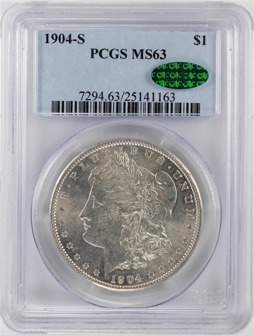 One 1904-S $1 Morgan Silver Dollar Coin PCGS MS63 CAC. PCGS Graded.