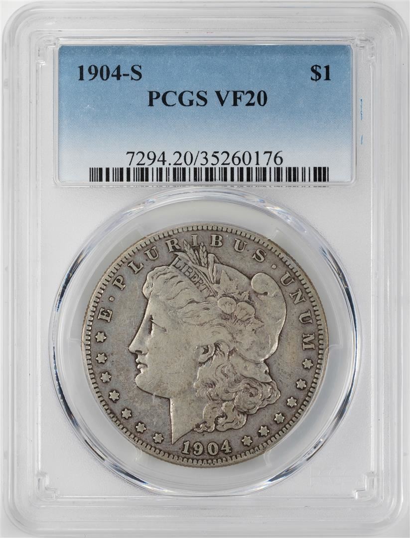 One 1904-S $1 Morgan Silver Dollar Coin PCGS VF20. PCGS Graded.