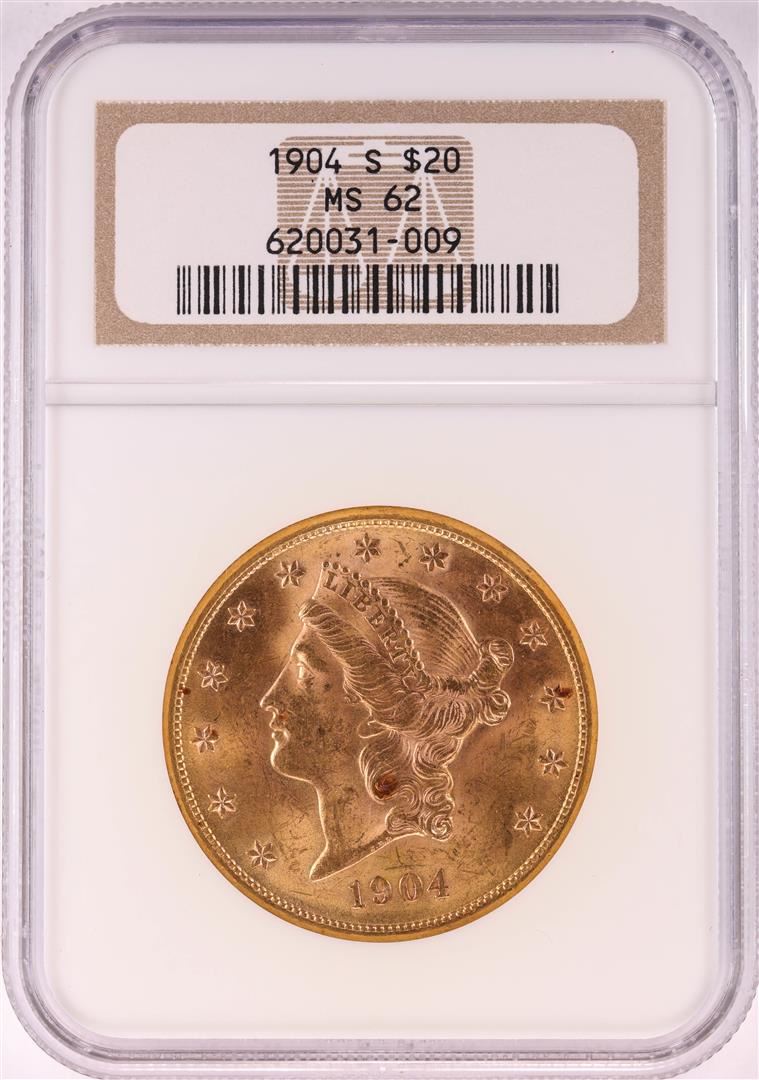 One 1904-S $20 Liberty Head Double Eagle Gold Coin NGC MS62. NGC Certified.