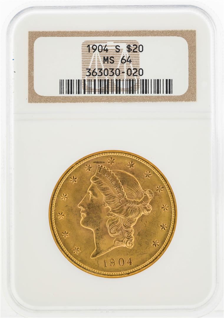 One 1904-S $20 Liberty Head Double Eagle Gold Coin NGC MS64. NGC Certified.