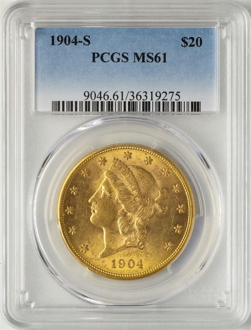 One 1904-S $20 Liberty Head Double Eagle Gold Coin PCGS MS61. PCGS Graded.
