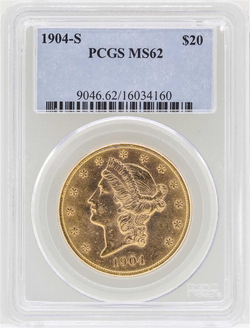 One 1904-S $20 Liberty Head Double Eagle Gold Coin PCGS MS62. PCGS Graded.