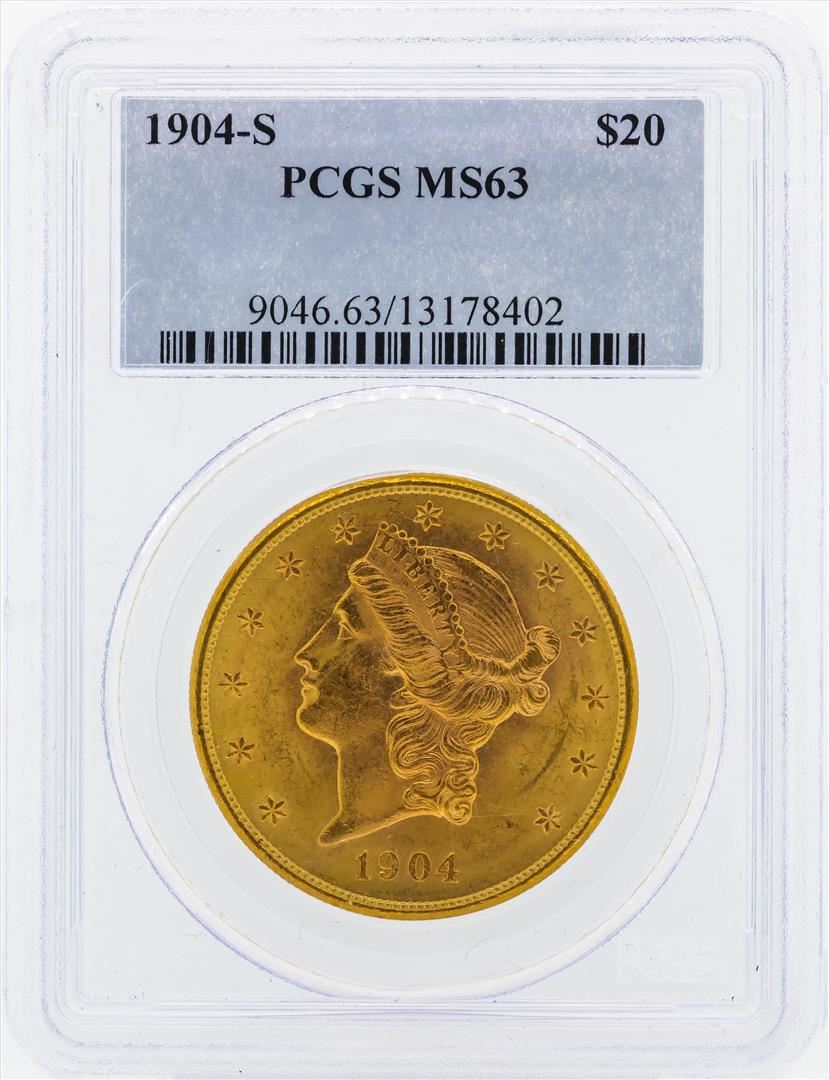 One 1904-S $20 Liberty Head Double Eagle Gold Coin PCGS MS63. PCGS Graded.