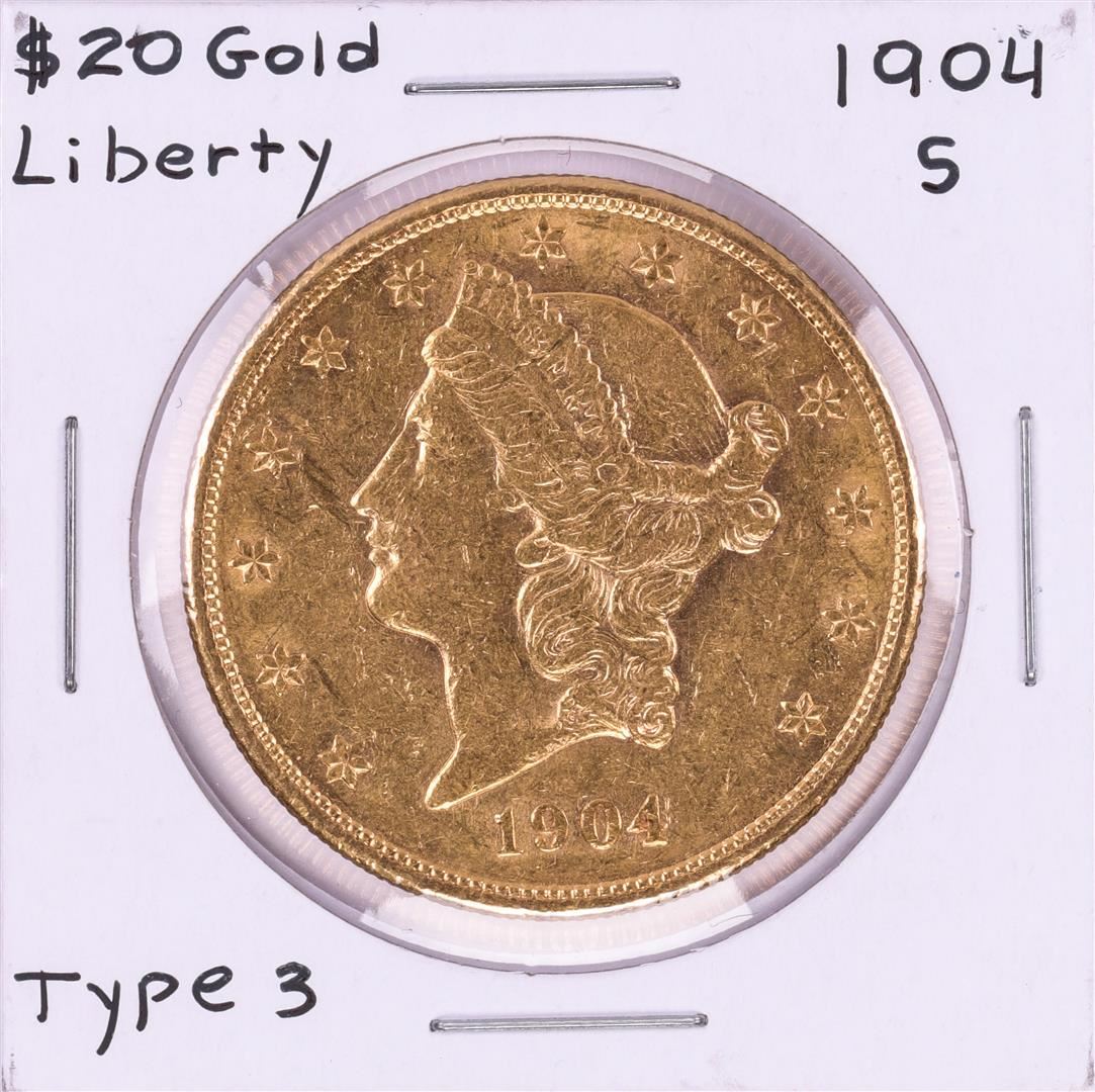 One 1904-S $20 Liberty Head Double Eagle Gold Coin.