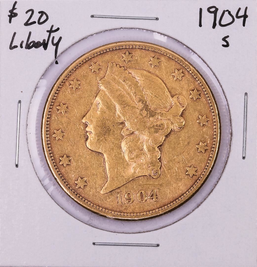 One 1904-S $20 Liberty Head Double Eagle Gold Coin.