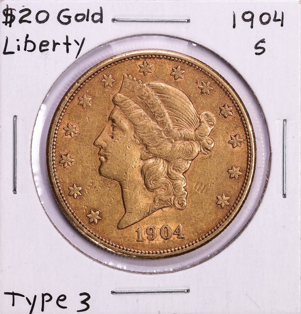 One 1904-S $20 Liberty Head Double Eagle Gold Coin.