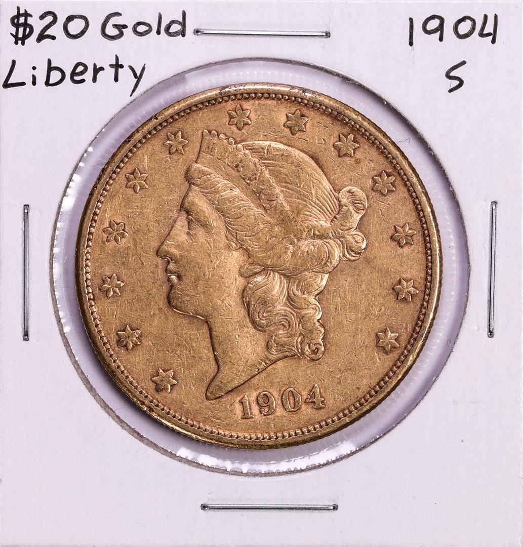 One 1904-S $20 Liberty Head Double Eagle Gold Coin.