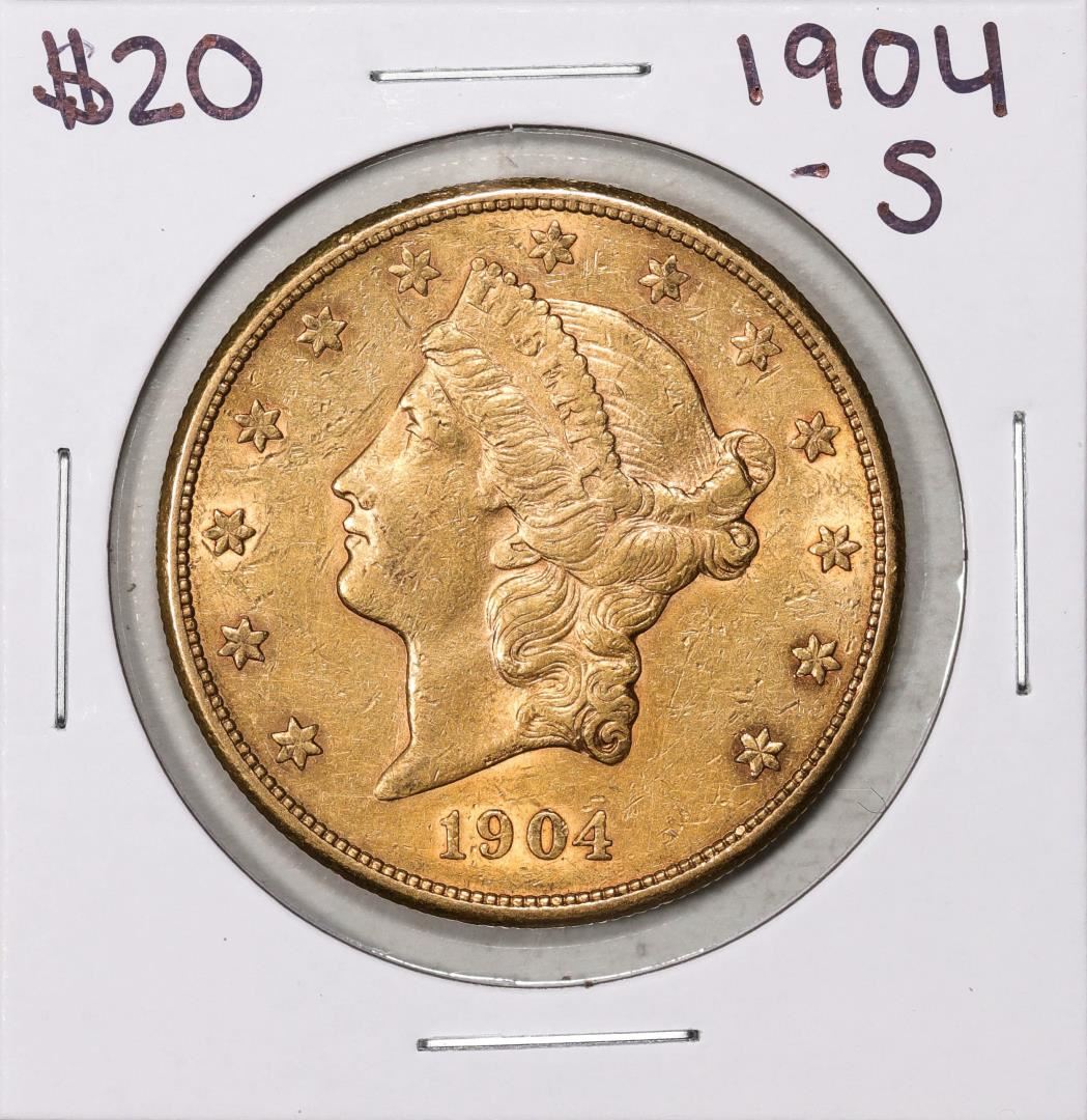 One 1904-S $20 Liberty Head Double Eagle Gold Coin.