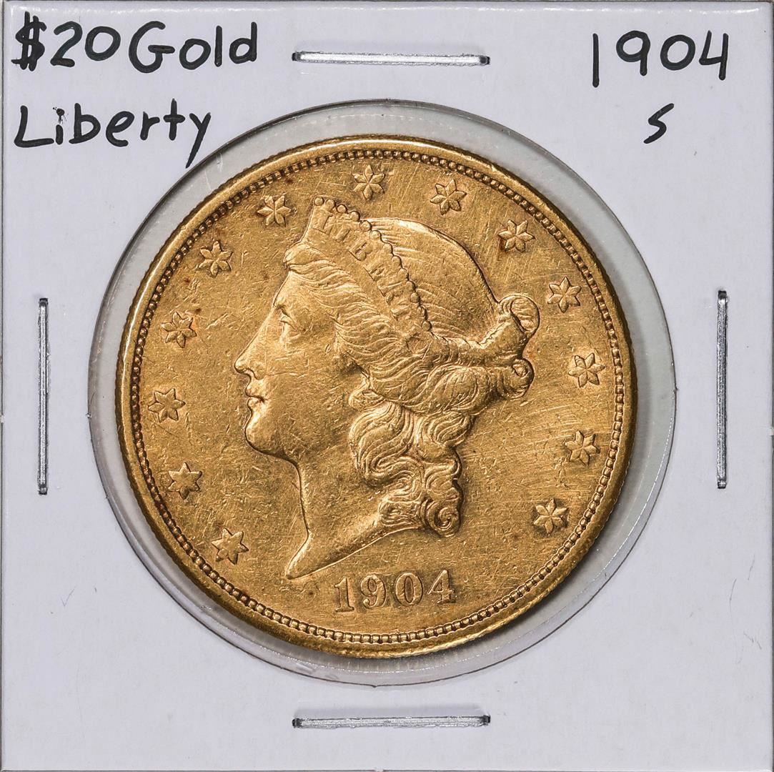 One 1904-S $20 Liberty Head Double Eagle Gold Coin.