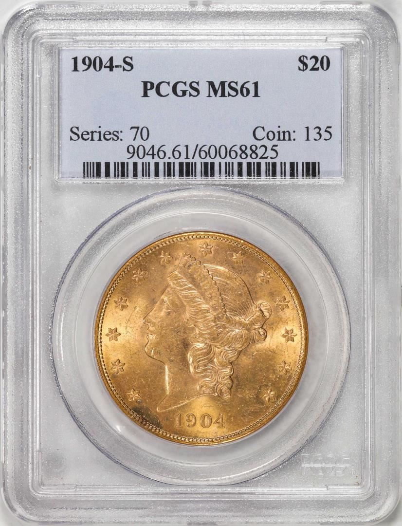 One 1904-S $20 Liberty Head Eagle Gold Coin PCGS MS61. PCGS Graded.