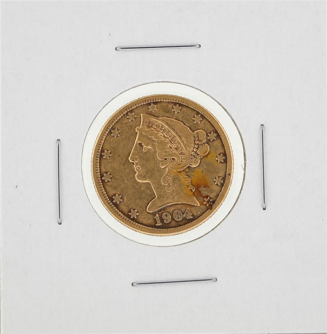 One 1904-S $5 Liberty Head Half Eagle Gold Coin.