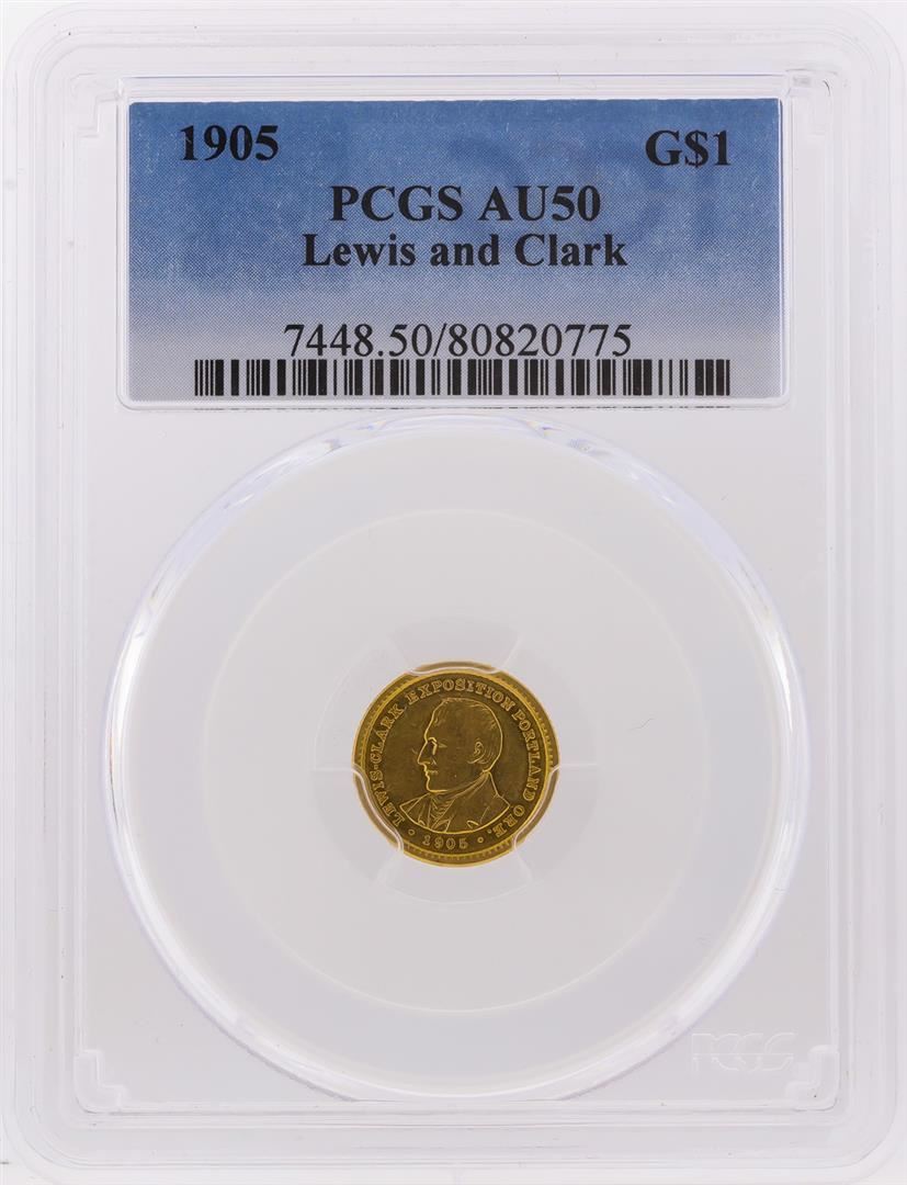 One 1905 $1 Lewis & Clark Gold Coin PCGS AU50. PCGS Graded.