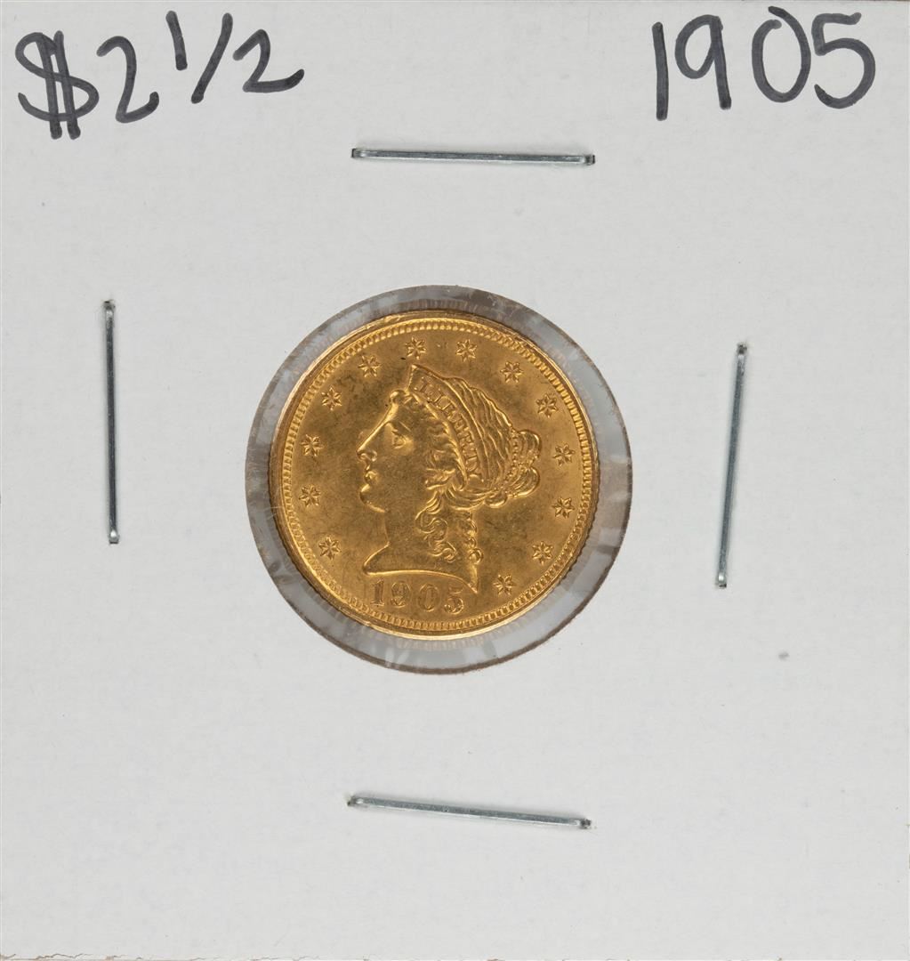 One 1905 $2 1/2 Liberty Head Quarter Eagle Gold Coin.
