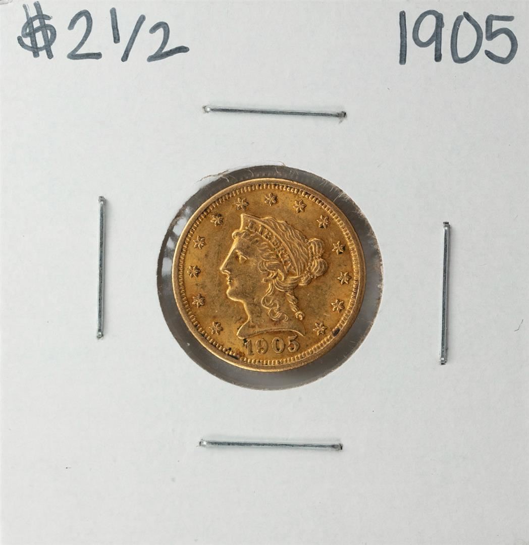 One 1905 $2 1/2 Liberty Head Quarter Eagle Gold Coin.