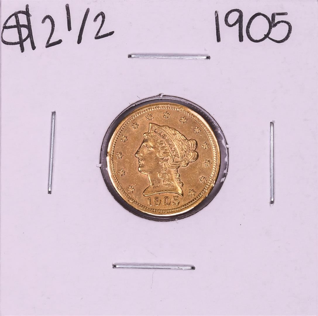 One 1905 $2 1/2 Liberty Head Quarter Eagle Gold Coin.