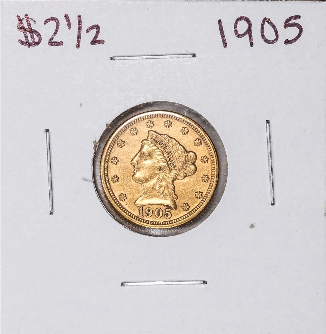 One 1905 $2 1/2 Liberty Head Quarter Eagle Gold Coin.