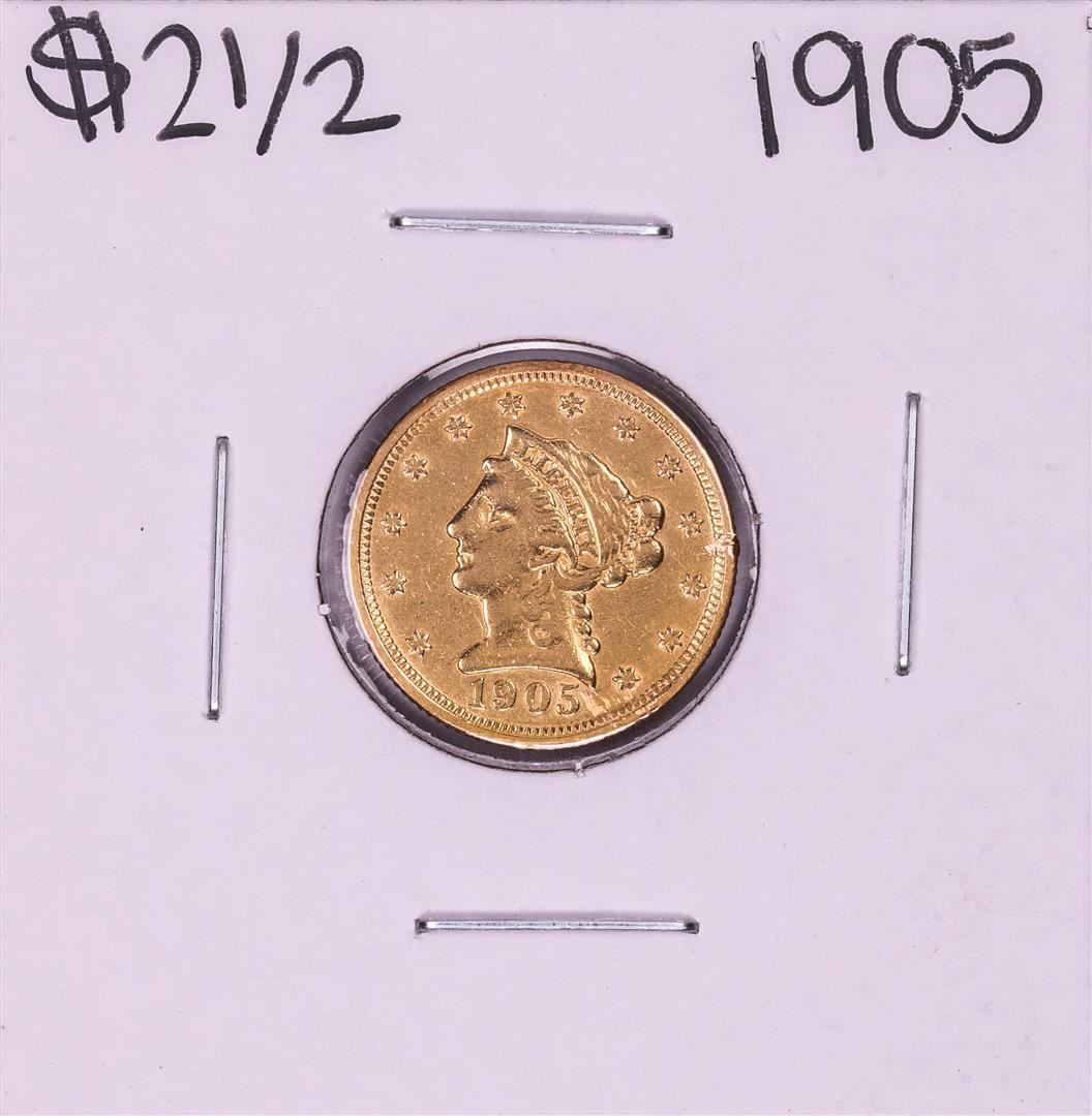 One 1905 $2 1/2 Liberty Head Quarter Eagle Gold Coin.