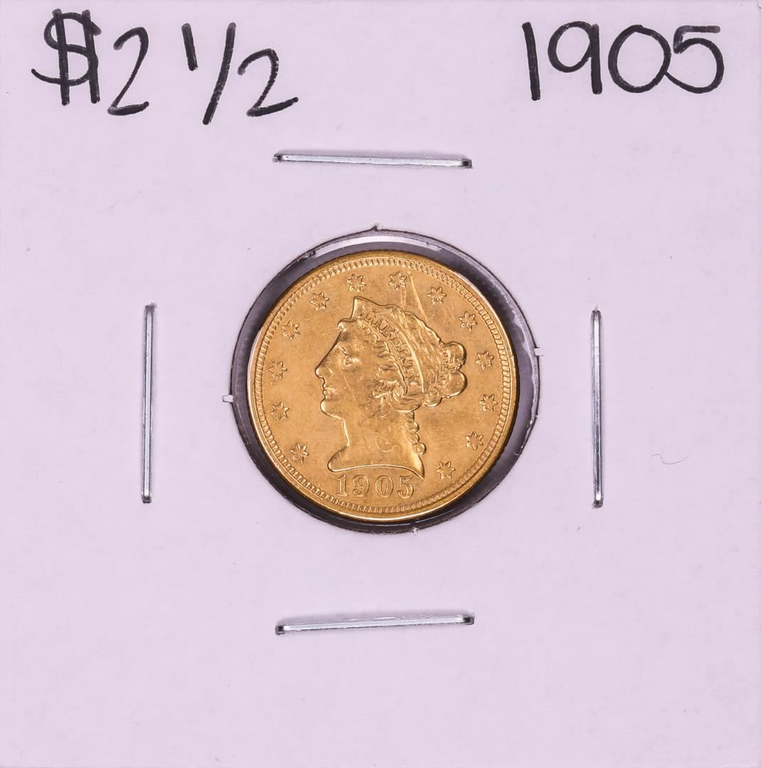 One 1905 $2 1/2 Liberty Head Quarter Eagle Gold Coin.