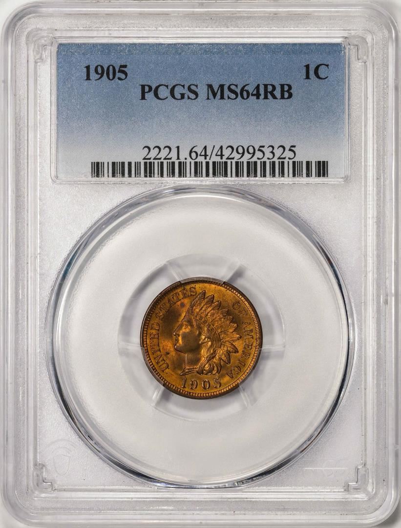 One 1905 Indian Head Cent Coin PCGS MS64RB. PCGS Graded.