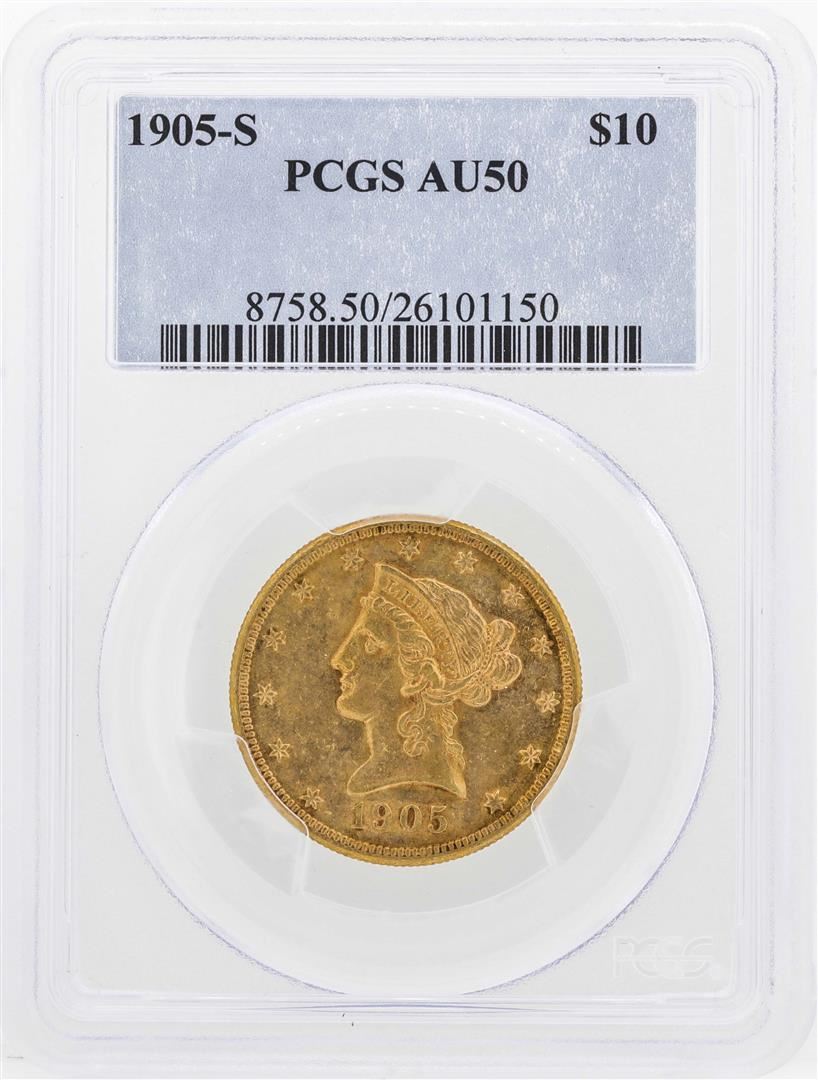 One 1905-S $10 Liberty Head Eagle Gold Coin PCGS AU50. PCGS Graded.