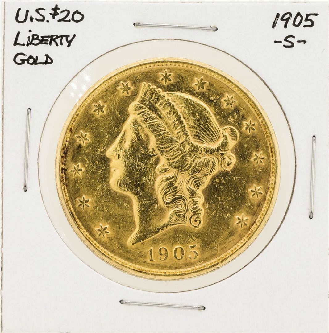 One 1905-S $20 Liberty Head Double Eagle Gold Coin.