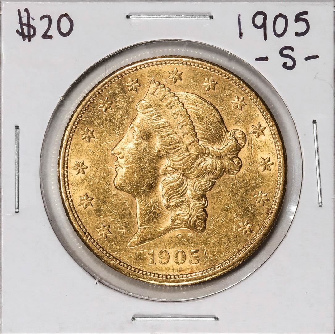 One 1905-S $20 Liberty Head Double Eagle Gold Coin.