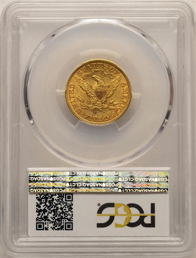 One 1905-S $5 Liberty Head Half Eagle Gold Coin PCGS AU55. PCGS Graded.