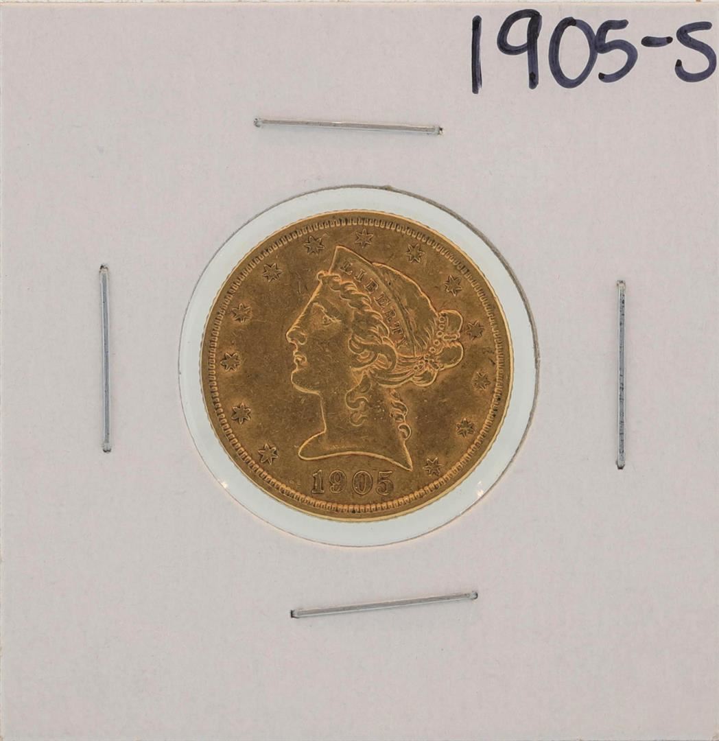 One 1905-S $5 Liberty Head Half Eagle Gold Coin.