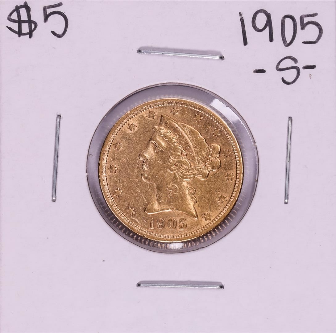 One 1905-S $5 Liberty Head Half Eagle Gold Coin.