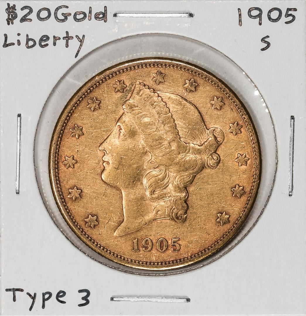 One 1905-S Type 3 $20 Liberty Head Double Eagle Gold Coin.