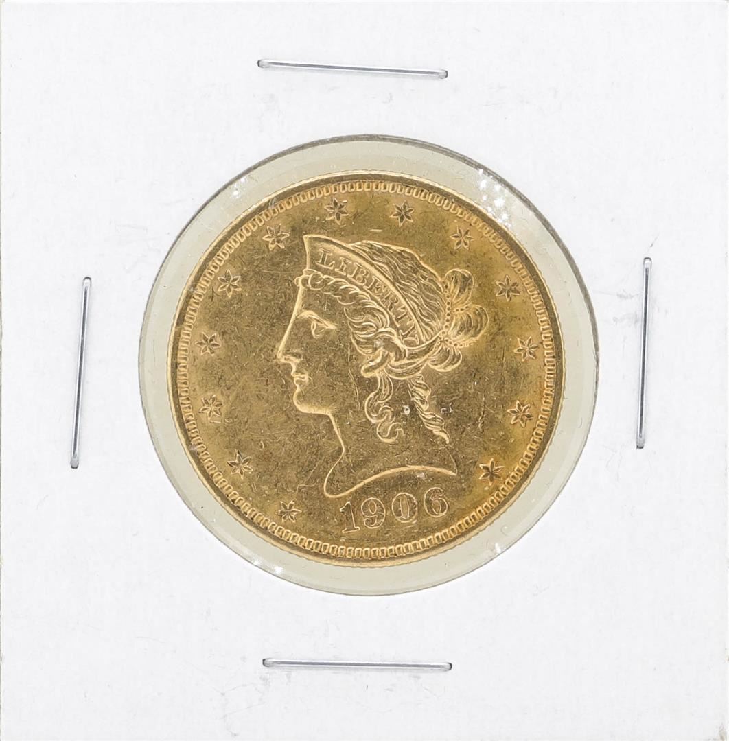 One 1906 $10 Liberty Head Eagle Gold Coin.