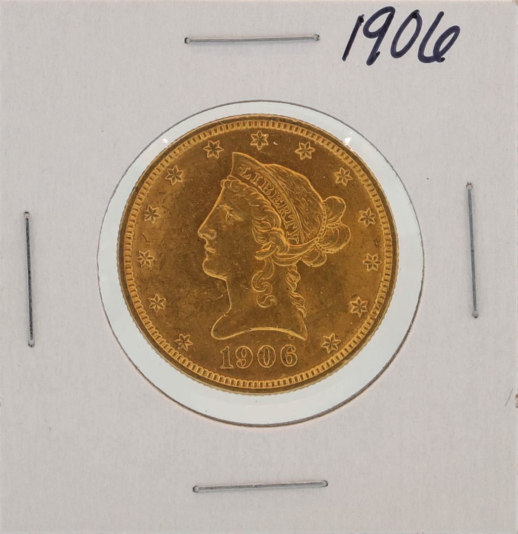 One 1906 $10 Liberty Head Eagle Gold Coin.