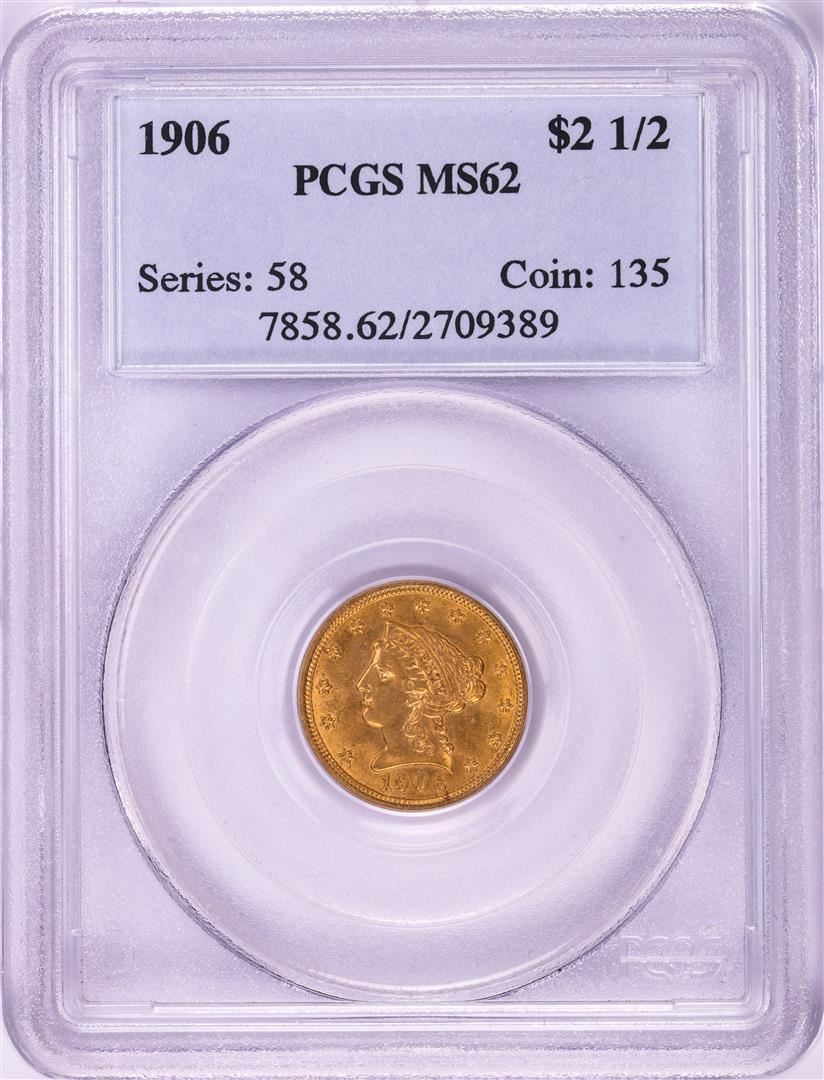 1906 $2 1/2 Liberty Head Quarter Eagle Gold Coin PCGS MS62