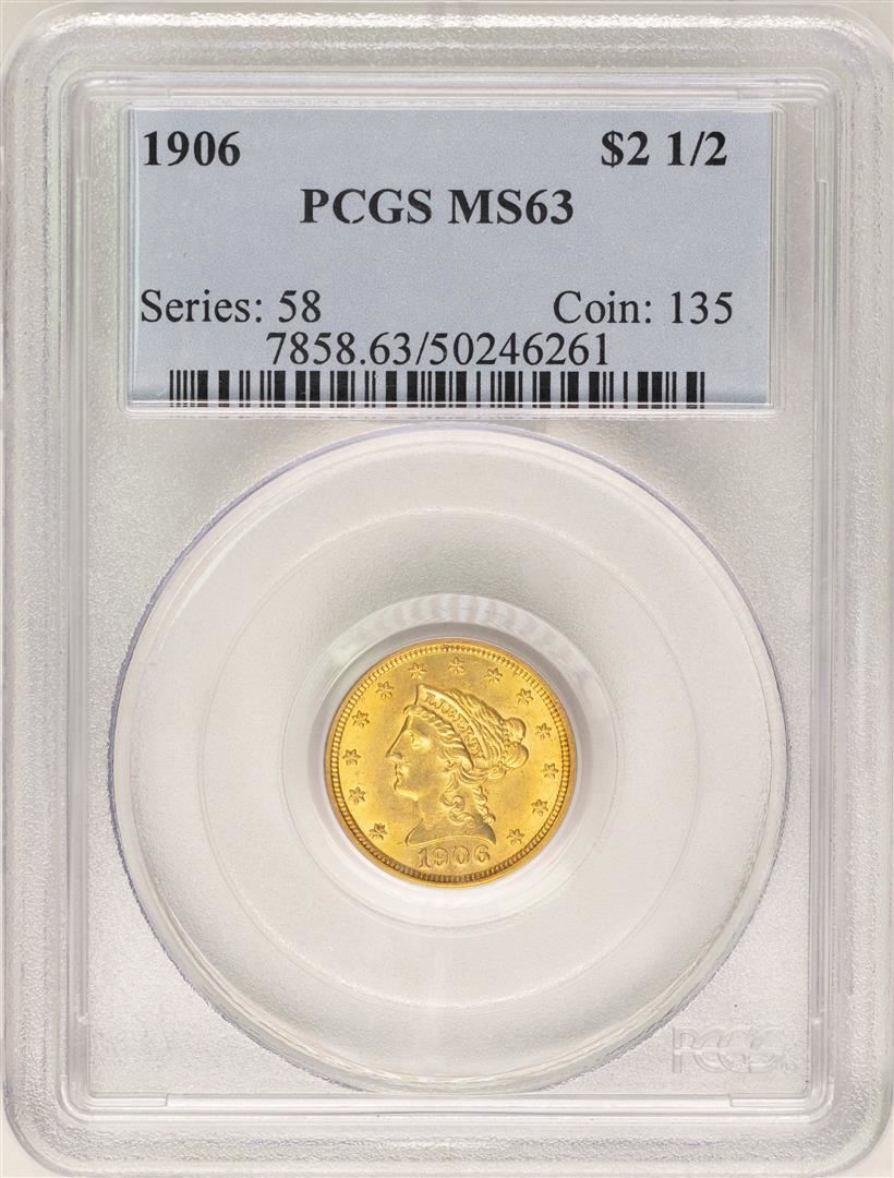 One 1906 $2 1/2 Liberty Head Quarter Eagle Gold Coin PCGS MS63. PCGS Graded.