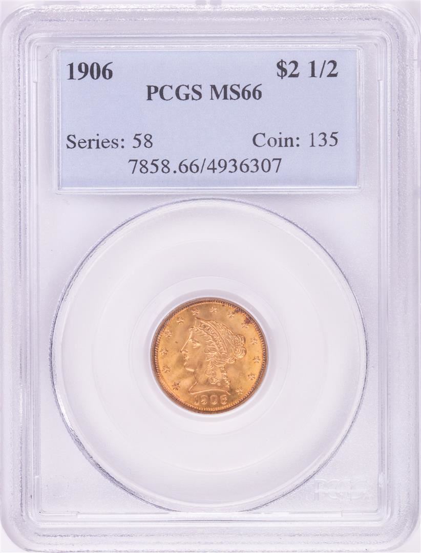 One 1906 $2 1/2 Liberty Head Quarter Eagle Gold Coin PCGS MS66. PCGS Graded.