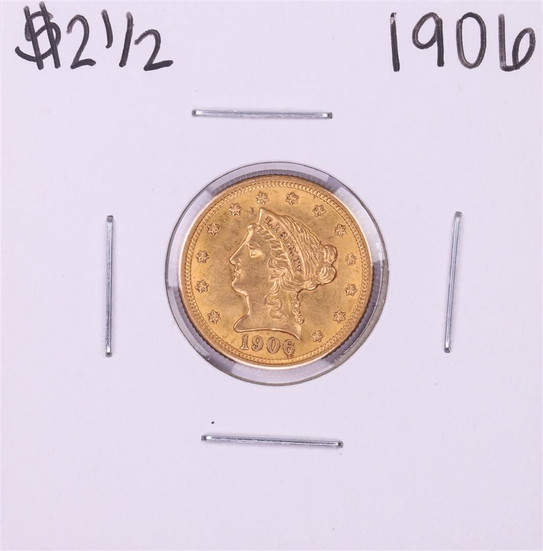 One 1906 $2 1/2 Liberty Head Quarter Eagle Gold Coin.