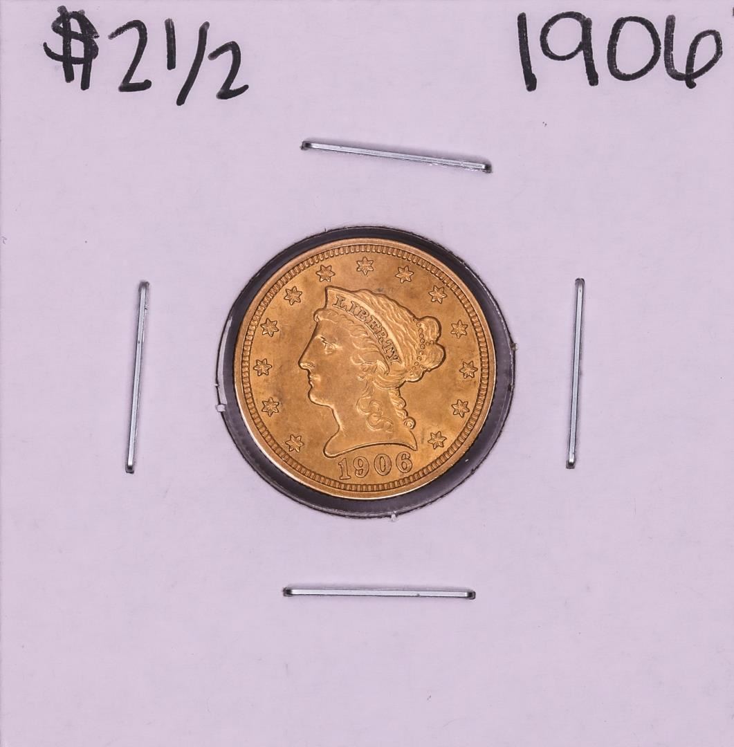 One 1906 $2 1/2 Liberty Head Quarter Eagle Gold Coin.