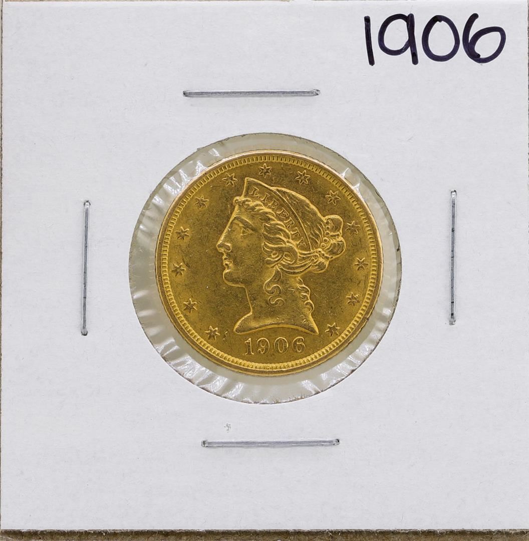 One 1906 $5 Liberty Head Half Eagle Gold Coin.
