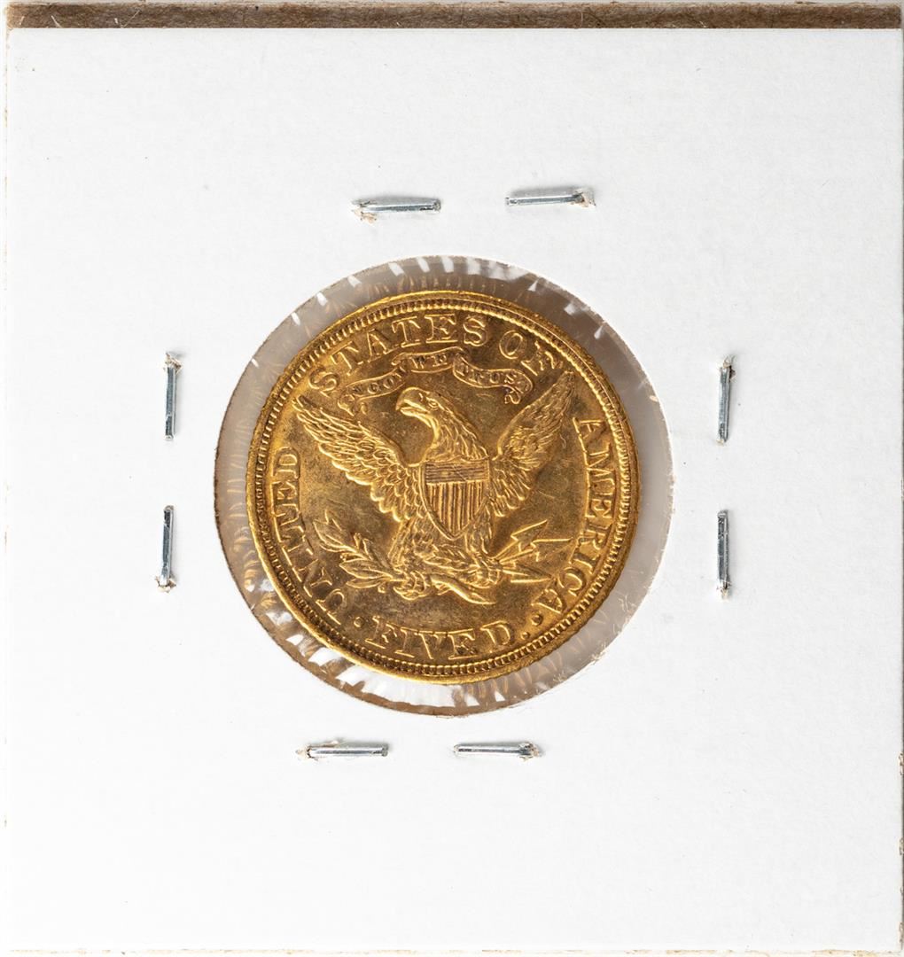 One 1906 $5 Liberty Head Half Eagle Gold Coin.