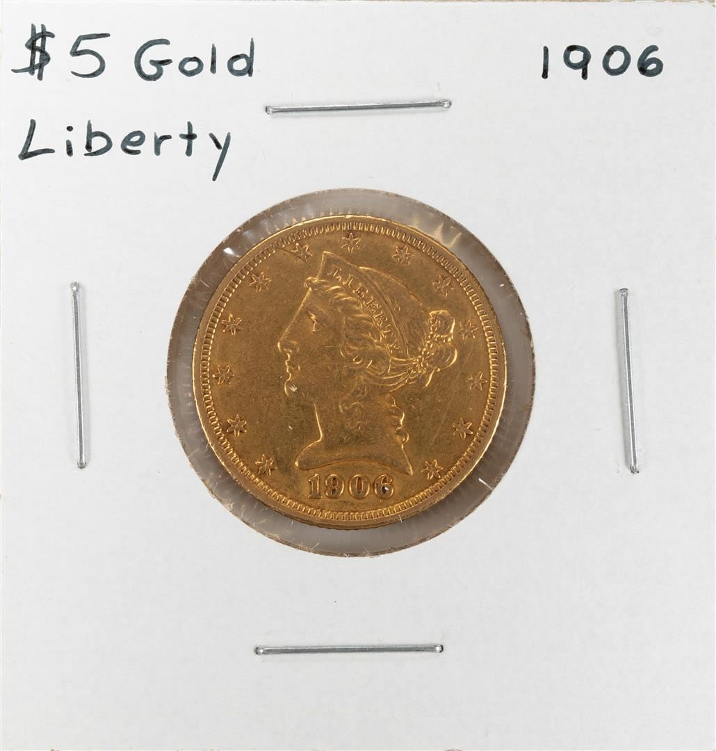 One 1906 $5 Liberty Head Half Eagle Gold Coin.