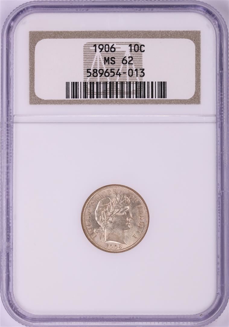 One 1906 Barber Dime Coin NGC MS62. NGC Certified.