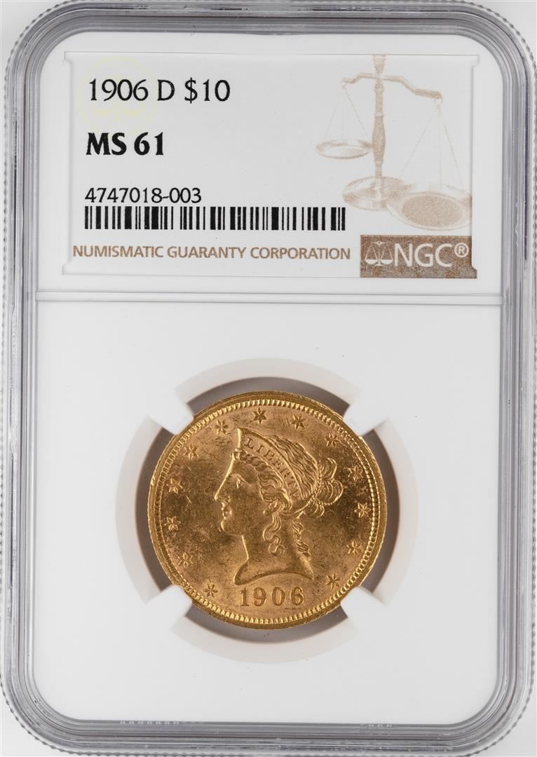One 1906-D $10 Liberty Head Eagle Gold Coin NGC MS61. NGC Certified.