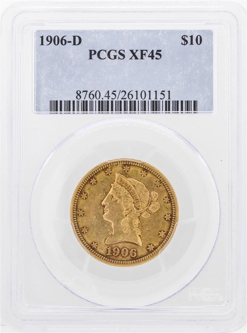 One 1906-D $10 Liberty Head Eagle Gold Coin PCGS XF45. PCGS Graded.